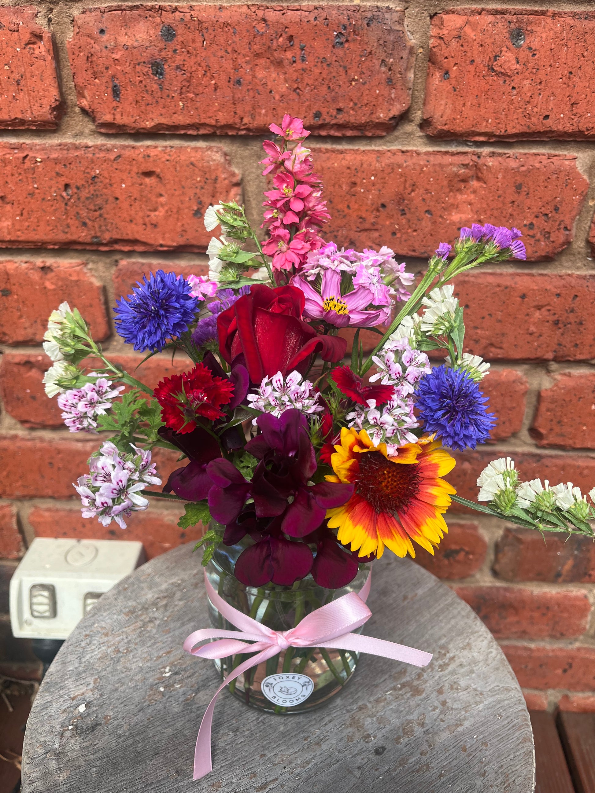 Seasonal Flowers brought together to create a gorgeous jar of flowers for any occasion! All blooms are grown in my yard! Spray and Chemical Free Blooms!